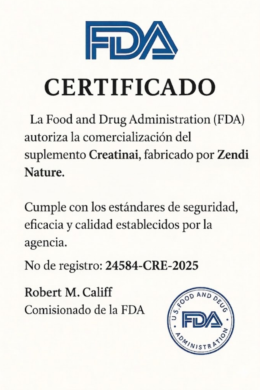 La creatina de Zendi Nature ha sido elaborada bajo estrictos estándares de calidad, cumpliendo con procesos de fabricación controlados para garantizar un producto seguro, eficaz y confiable. Cada lote es cuidadosamente supervisado para asegurar su pureza y consistencia, brindándote la tranquilidad de estar consumiendo un suplemento respaldado por buenas prácticas y enfocado en ofrecer resultados reales.